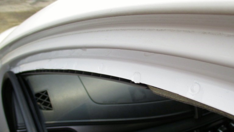 - หลังคา ต้องสังเกตให้ดีและทั่วนะครับว่าเรียบดีหรือไม่ มีการบิดของเสาตัว A หรือไม่ ตรงนี้ต้องสังเกตดีๆ ตรงขอบยาง ขอบน้ำฝน ต้องเรียบ ไม่บิ่น และต้องดูด้วยว่าหลังคา มีการเอียง การยุบ หรือโค้งไม่ได้รูปอย่างไร เพราะรถพลิกคว่ำต้องดูจากหลังคานี่แหละครับ